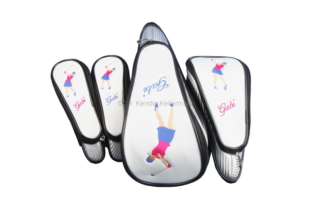 Dieser Beitrag zeigt gestickte Golferinnen, die den Driver schwingen. Die individuell bestickten Golfbags, Schlägerhauben und Golfhandtaschen zeigen unterschiedliche Golferinenn am Abschlag, im Aufschwung oder Durchschwung. Die Motive basieren auf der Kategorie „Ladies with driver“ des Designtools mit dem online individuell bestickte Taschen und Headcover designen kann. Ich habe die Golferinnen mit Driver nach den Design-Charakteristika wie folgt zusammengefasst: